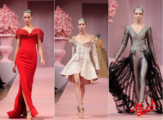 بدأ العرض بتقديم موديلات برز فيها الدانتيل، والشيفون، والبلوزات الهادئة الأنيقة، والسراويل الحريرية الوردية، وبدت فساتين الدانتيل والشيفون خفيفة، وكذلك ظهرت موديلات التنانير كطبقات من حلوى غزل البنات. وفي هذا الجو المفعم بالأحلام قدم أيضا موديلات بألوان مثل التركواز والأحمر ، ثم ظهرت عارضة بثوب أسود سهرة يوحي بكبرياء الأنثى.