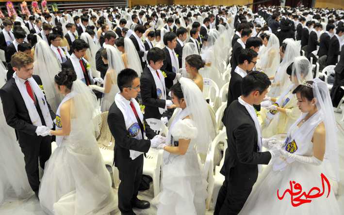 شهدت كوريا الجنوبية إقامة أكبر حفل زفاف جماعي في العالم، الحفل الفريد غير المسبوق ضم 3500 زوجا وزوجة من مختلف أنحاء العالم.