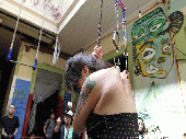مشهد الأجساد المعلقة بسنانير والدماء تنزف منها أثار الهلع في نفوس البعض، بينما أثار تصفيق البعض الآخر، ومازال المهرجان مستمرا ، رغم الإحتجاجات الصحية التي تدور حول الوشم الذي يمكن أن يتسبب في نقل العديد من الأمراض.