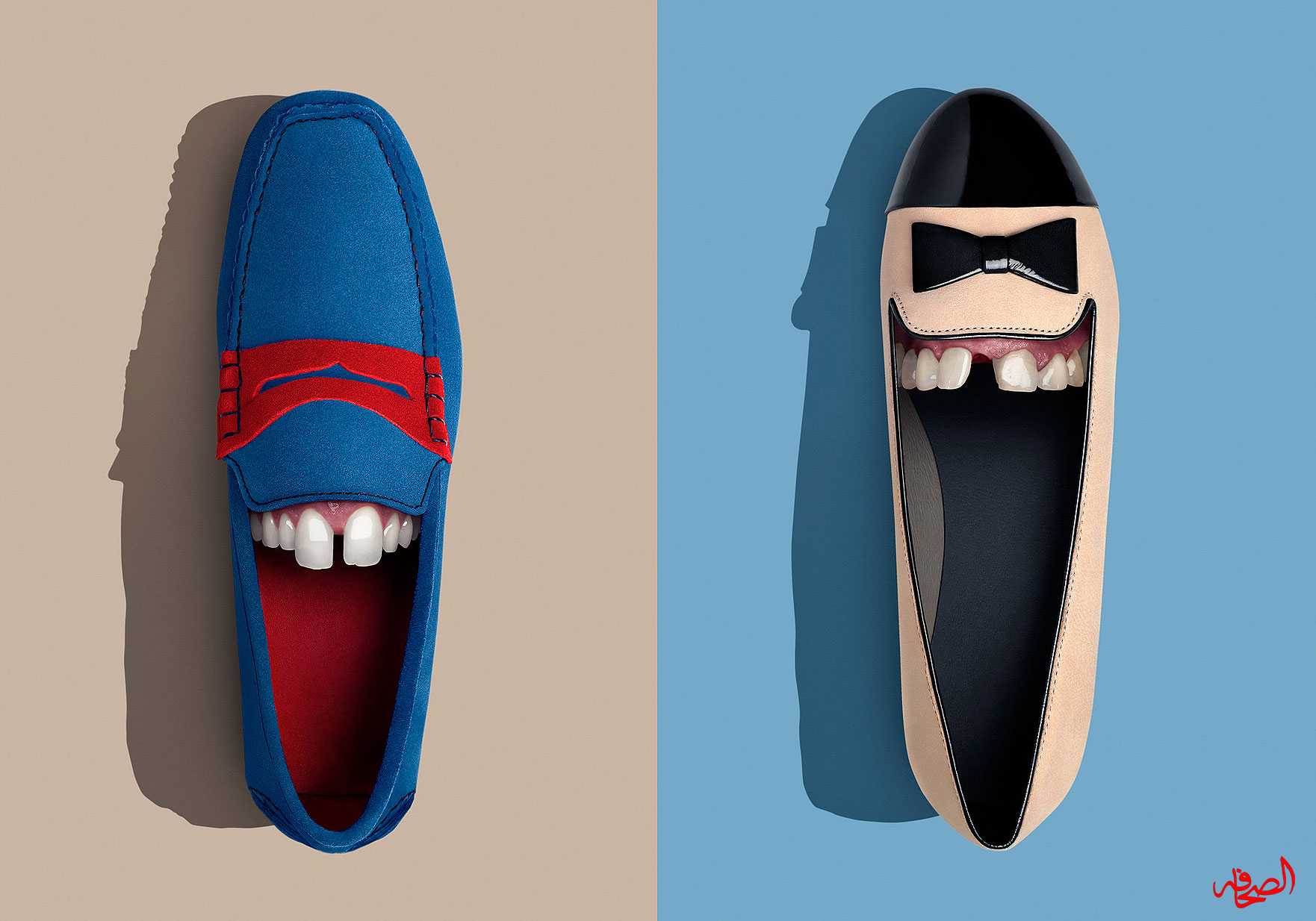 قام استديو pop-postproduction الألماني المعروف بابتكاراته في عالم التصوير بالتقاط صور لأحذية وبها أسنان اصطناعية ، فتظهر كشكل فم مضحك .