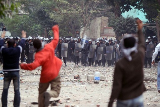 كر وفر مستمر بين الشرطة والمتظاهرين يجري منذ السبت في شارع محمد محمود وآثار المعارك لا تخطئها العين .. كثير من الحجارة، وطلقات رصاص مطاطي، وخرطوش فارغة، وسحابات كثيفة من الغازات المسيلة للدموع تغطيه معظم الوقت، واجهات المحلات محطمة بل أن مبنى الجامعة الأميركية الرئيسي تضرر كذلك.