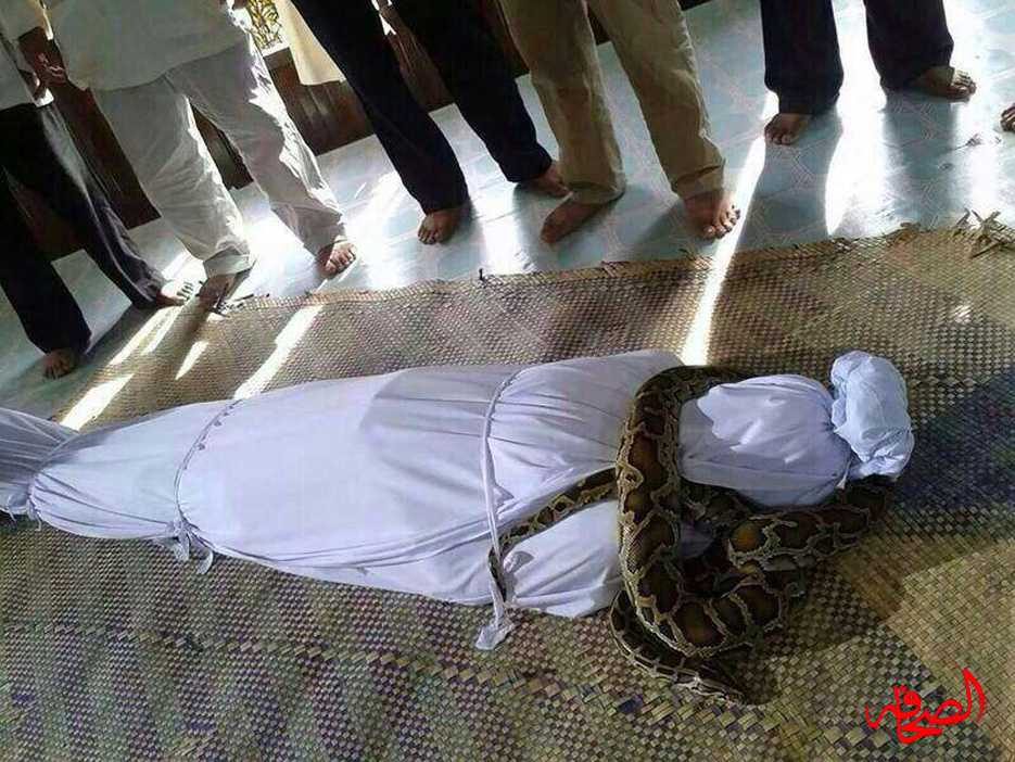 بالصور .. "ثعبان" ضخم يلتف حول جثة تارك الصلاة