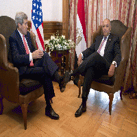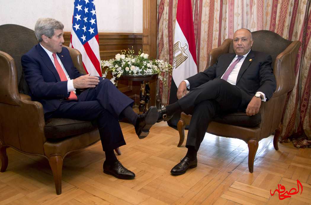 القاهرة: الصحافة صورة تحمل ألف معنى . أهمها مكانة مصر في عالم السياسة الخارجية . والتي تعتمد على الندية، وهي صورة وزير الخارجية المصري سامح شكري وهو يجلس واضعا قدم على أخرى أمام وزير الخارجية الأمريكي جون كيري الذي يتخذ نفس الوضعية . وكان سامح شكرى وزير الخارجية قد التقى صباح اليوم مع جون كيرى وزير الخارجية الامريكي فى مستهل اعمال مؤتمر القاهرة الدولى لاعادة اعمار غزة الذى تستضيفه مصر حيث تناول اللقاء العلاقات الثنائية وسبل تطويرها فى مختلف المجالات بما يحقق المصالح المشاركة للبلدين . وناقش الوزيران عددا من القضايا الاقليمية والدولية الهامة فى مقدمتها القضية الفلسطينية فى ضوء استضافة مصر مؤتمر اعمار غزة واهمية انعقاده فى هذا التوقيت الهام لاعادة بناء ما تم تدميره ورفع المعاناة عن الشعب الفلسطينى . كما تناول سبل بدء العملية السياسية بين الجانبين الفلسطينى والاسرائيلى بما يسمح باطلاق عملية تفاوض جادة للتوصل لتسوية دائمة ونهائية استنادا الى المرجعيات الدولية المتفق عليها لعملية السلام وبما يضمن عدم تكرار العمليات العسكرية على قطاع غزة . كما استعرض الوزيران بشكل مستفيض الاوضاع بالمنطقة بما فى ذلك تطورات الازمة السورية واهمية التوصل لحل سياسى لها فضلا عن تناول الاوضاع بالعراق ودعم جهود الحكومة العراقية فى ادارة عملية سياسية تشمل جميع القوى السياسية العراقية بغض النظر عن الانتماءات الدينية او العرقية والمذهبية . كما تم تناول تطورات الاوضاع السياسية والامنية فى ليبيا حيث اكد شكرى على اهمية دعم المؤسسات المنتخبة فى لببيا ومساندة الحكومة الليبية الشرعية التى اقرها مجلس النواب المنتخب وتمكين الحكومة الشرعية من تحقيق الاستقرار ومواجهة التنظيمات الارهابية . وتناول الوزيران ايضا قضية الارهاب فى ظل استشراء المنظمات الارهابية بالمنطقة حيث شدد الوزير شكرى على ان الارهاب ظاهرة عالمية تهدد المجتمع الدولى برمته وضرورة التصدى لجميع التنظيمات الارهابية دون استثناء سواء كانت فى ليبيا او سوريا او العراق او غيرها باعتبار انها تمثل خطرا شديدا على الاستقرار والتنمية فى المنطقة والعالم .. كما اكد الوزير شكرى على اهمية انتهاج مقترب شامل فى التعامل مع هذه الظاهرة يتضمن محاربة الافكار التكفيرية وقطع التمويل عن التنظيمات الارهابية ونشر قيم الاسلام المعتدل وذلك الى جانب الادوات الامنية .