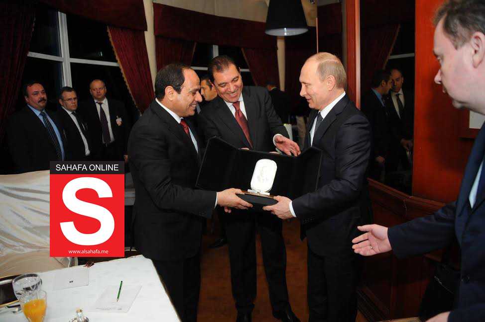 وتبادل الرئيسان الهدايا مساء الاثنين وقدم بوتين بندقية كلاشنيكوف روسية الصنع الى نظيره المصري، بحسب صورة وزعتها الرئاسة المصرية. واعلن الرئيسان تعزيز التعاون كذلك في مجالات الاستثمار والسياحة وفي المجال التجاري. وشدد السيسي على انه "اكد للرئيس بوتين على الاستمرار في تدعيم التعاون العسكري بين بلدينا خاصة في ظل الظروف الراهنة".