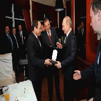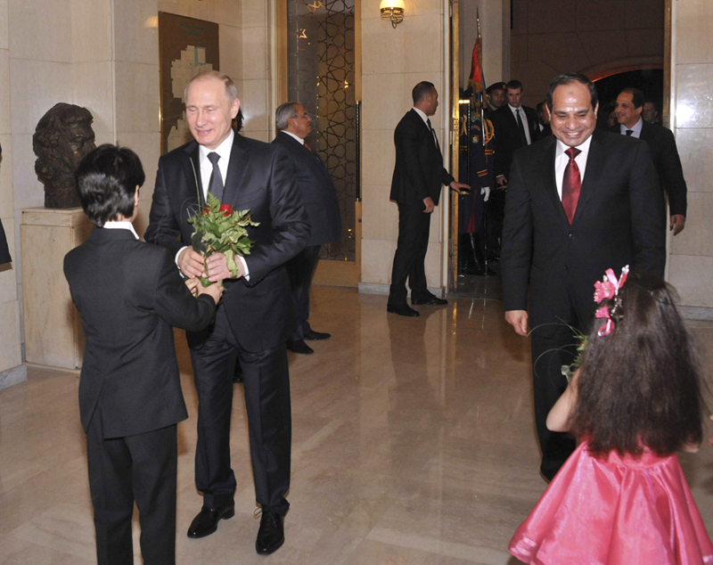 وبدأ بوتين الاثنين زيارة دولة الى مصر هي الاولى منذ عشر سنوات. وكان التقى الرئيس الاسبق حسني مبارك في القاهرة في العام 2005. وحظي بوتين باستقبال رسمي حار من قبل السيسي في قصر القبة في القاهرة غداة امسية امضياها معا في دار الاوبرا وانتهت بعشاء في برج القاهرة.
