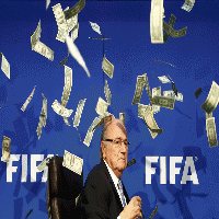 أمطر الممثل الكوميدي الشهير لي نيسلون رئيس الاتحاد الدولي لكرة القدم السويسري سيب بلاتر بحزمة من الدولارات المزيفة، كاحتجاج على قضايا الفساد الكبيرة التي تعصف بالمنظمة.