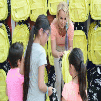 صور .. بريتني سبيرز تهدى الأطفال حقائب ظهر