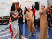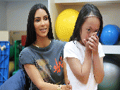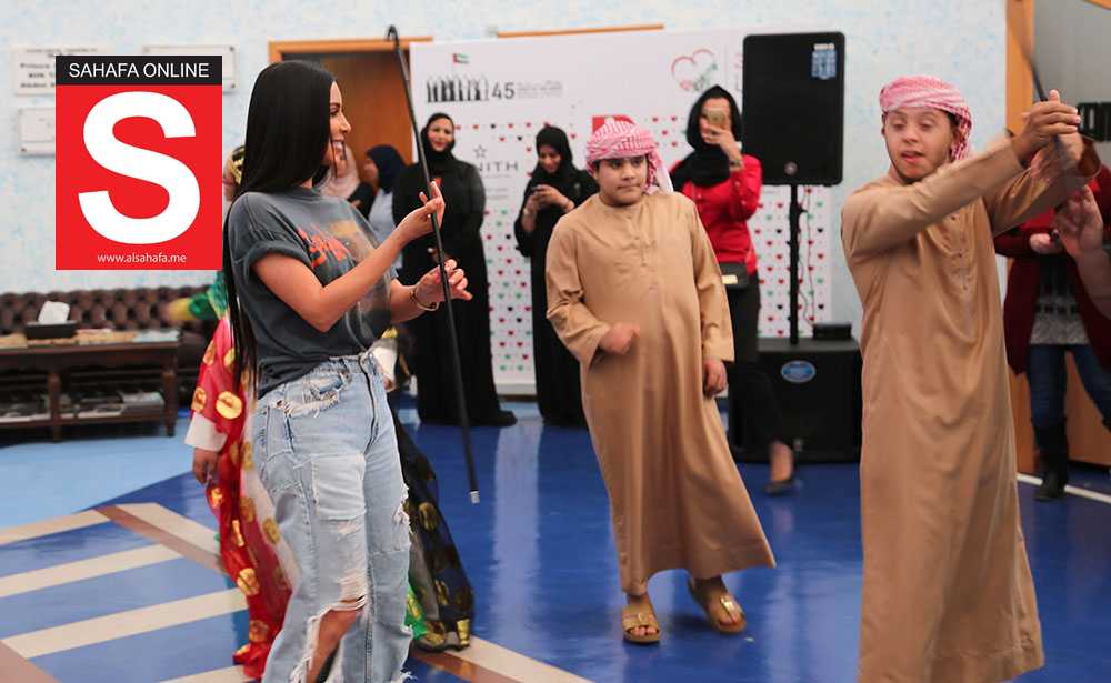 كيم داعبت أطفال المركز ورقصت معهم ، واستمعت إلى شرح وافي من العاملين بالمركز عن الخدمات التي يقدمها للأطفال ذوي الاحتياجات الخاصة .