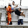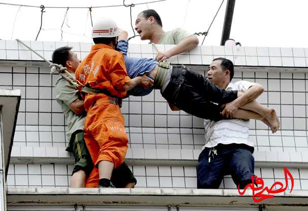 رجال الانقاذ ينقذون امرأة كانت تحاول الانتحار بالقفز من الطابق التاسع من مبنى سكني، في مدينة فوتشو بمقاطعة فوجيان في الصين .11-8-2013.