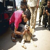 غزة : الصحافة.تبنت منظمة نمساوية مختصة برعاية  الحيوانات أسدًا ولبؤة  يربيهما فلسطيني من قطاع غزة في منزله منذ أن كانا شبلين، حيث قامت بنقلهما إلى محمية طبيعية في أفريقيا.وتم نقل الأسد الذي يدعى "أليكس"، واللبؤة التي تدعى "منى"، في قفصين حديديين، بإشراف 3 أطباء بيطرين ت ...