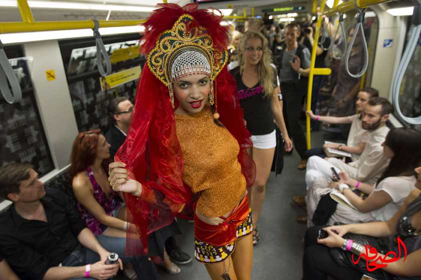 ركاب المترو اندهشوا عندما وجدوا العارضات بينهم يستعرضون أزياءهم ويقومون بحركات إستعراضية .