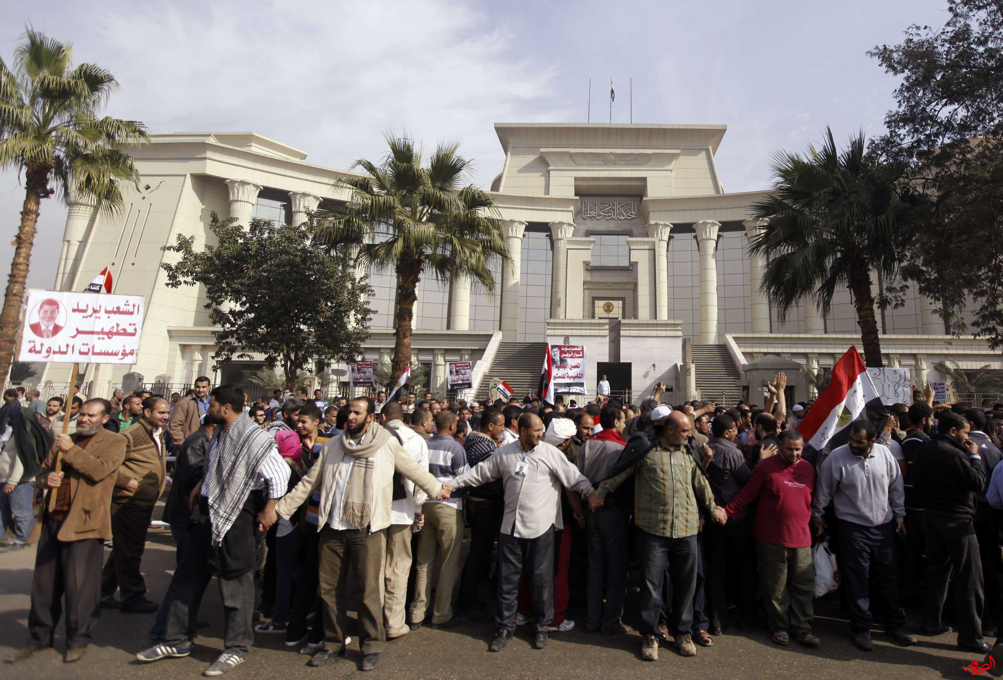 "إزاء ما تقدم فإن قضاة المحكمة الدستورية العليا لم يعد أمامهم اختيار إلا أن يعلنوا لشعب مصر العظيم أنهم لا يستطيعون مباشرة مهمتهم المقدسة في ظل هذه الأجواء المشحونة... ومن ثم فإنهم يعلنون تعليق جلسات المحكمة إلى أجل يقدرون فيه على مواصلة رسالتهم." واحتشد الإسلاميون حول المحكمة منذ مساء أمس مرددين هتافات مناوئة لقضاتها تتهمهم بالفساد.