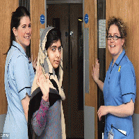 ملالا يوسف زاي (15 عاما) خرجت من المستشفى وهي تمشي على قدميها، وابتسمت، ولوحت للعاملين بالمستشفى الملكة أليزابيث بالتحية وعانقت الممرضتين اللتين كانتا تعتنيان بها. حيث خضعت الفتاة إلى عمليات معقدة لإزالة رصاصة قاتلة من دماغها.