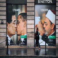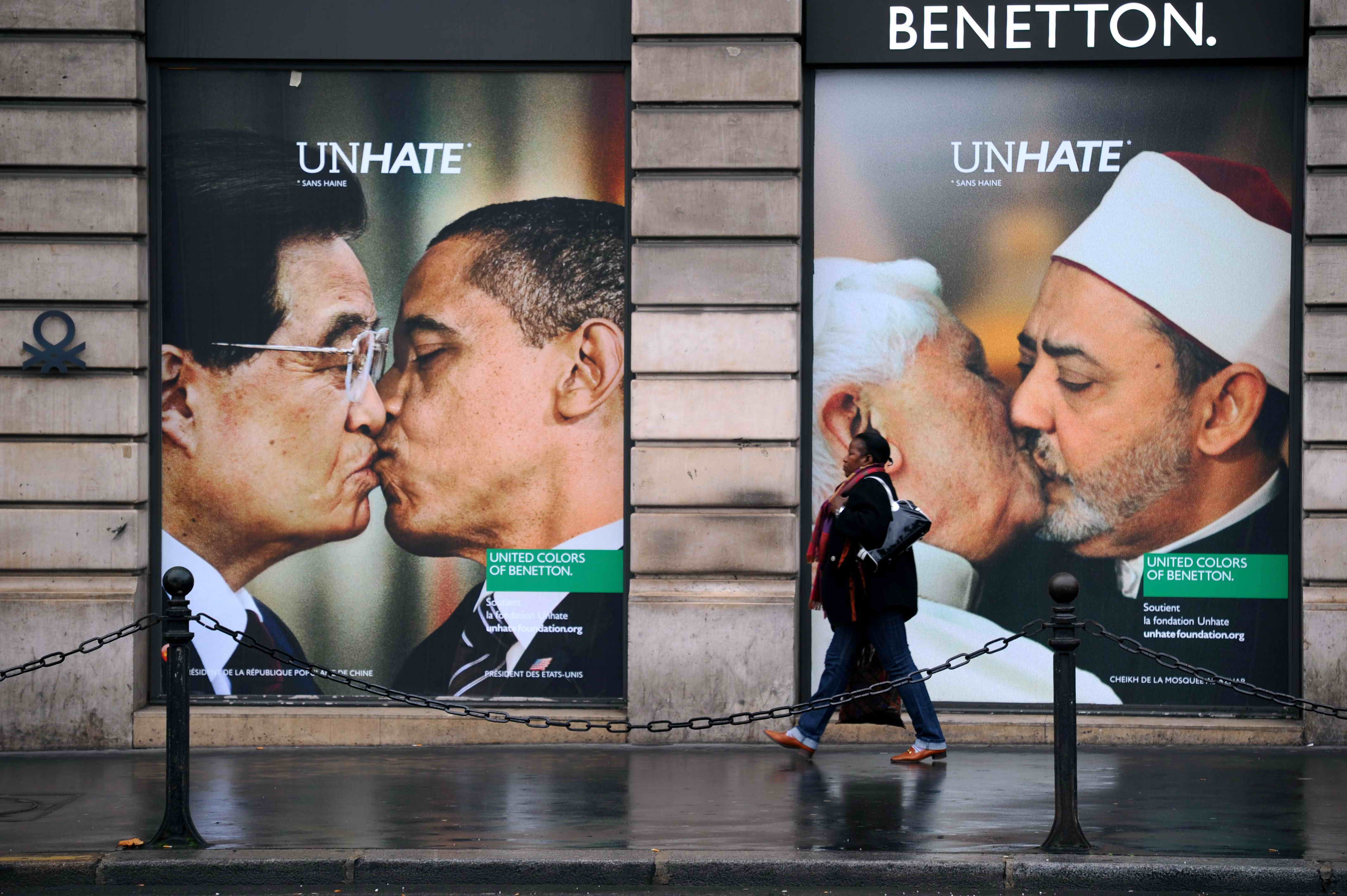 القاهرة: الصحافة في خطوة وصفت بالغباء الإعلاني طرحت مجموعة "بنيتون" الإيطالية للملابس حملة إعلانية تقدم صورا مزيفة مركبة لبعض الشخصيات العامة وهم يقبلون بعضهم البعض من الشفاة. الشركة ادعت أن حملتها هذه موجهة للتصدي لثقافة الكراهية . باعتبار أن الشخصين المتقابلين الذين وضعا في موضع التقبيل المخزي يمثل كل منهما تيار مضاد للآخر. من الصور التي نشرتها الحملة، وأثارت الاستياء. صورة البابا بنديكوس السادس عشر وهو يقبل شيخ الأزهر الدكتور أحمد الطيب، وصورة أخرى لشخصيات عامة وهي تقبل أخرى مثل الرئيس الأميركي باراك أوباما الذي ظهر في إحدى الصور وهو يقبل الرئيس الصيني. ولكن بضغط من الفاتيكان أعلنت مجموعة بنيتون الايطالية أمس انها سحبت من حملتها الدعائية صورة مركبة يظهر فيها البابا بنديكتوس السادس عشر وهو يقبل شيخ الأزهر في القاهرة لكنها أبقت على صور أخرى بينها صورة قبلة بين الرئيس الفرنسي نيكولا ساركوزي، والمستشارة الالمانية انغيلا ميركل. وأعربت مجموعة الملابس الايطالية المعروفة بحملاتها الاستفزازية عن "أسفها لكون استخدام هذه الصورة قد جرح مشاعر المؤمنين" معلنة عن "سحب الصورة فورا من الحملة الدعائية"، وأعلن متحدث باسم المجموعة التي نشرت صورا مركبة يظهر فيها ايضا نيكولا ساركوزي يقبل انغيلا ميركل، ومحمود عباس يقبل بنيامين نتانياهو "نذكر بأن معنى هذه الحملة هو حصرا التصدي لثقافة الكراهية بكل أشكالها". وكان الفاتيكان هدد المجموعة "بتحرك أمام السلطات المختصة" منددا "بقلة احترام خطيرة للبابا، وبجرح مشاعر المؤمنين". وانتقد المتحدث باسم الفاتيكان الأب فيدريكو لومباردي في بيان أيضا "الاستخدام غير المقبول لصورة الحبر الأعظم التي تم التلاعب بها، واستخدمت في إطار حملة دعائية لأغراض تجارية". وأوضح الفاتيكان أن "الصورة تشكل قلة احترام خطيرة للبابا وإهانة لمشاعر المؤمنين ودليلا واضحا على طريقة انتهاك أبسط قواعد الاحترام الواجب للشخص للفت الانتباه عبر الاستفزاز الإعلاني". وقد بثت مجموعة بنيتون صورة دعائية مركبة يظهر فيها البابا يقبل شيخ الأزهر السني احمد الطيب على فمه باسم مكافحة "الكراهية" مما اثار انتقاد الأوساط الكاثوليكية. وهذه الصور المركبة تدخل في إطار حملة دعائية جديدة لمجموعة بنيتون تحت عنوان "لا للكراهية" عرضها في باريس اليساندرو بنيتون نائب رئيس المجموعة، وكان يفترض أن تعلق في متاجر المجموعة في كافة أنحاء العالم. وقال اليساندرو بنيتون "انها صور رمزية تتضمن التماسة رجاء ساخرة واستفزازا بناء لتحفيز التفكير في الطريقة التي تمكن السياسة والإيمان والأفكار حتى لو كانت متعارضة ومختلفة من حمل الناس على الحوار والتأمل"، وصورة البابا وشيخ الأزهر رفعت لفترة وجيزة على يافطة من قبل أربعة شبان على جسر قرب الفاتيكان. وعرضت صورة أخرى مثيرة للصدمة أمام كاتدرائية ميلانو تظهر الرئيس الأميركي باراك أوباما يقبل نظيره الصيني هو جينتاو، وبعيد بث الصور على الانترنت في ايطاليا، طالبت جهات كاثوليكية بتعليق هذه الحملة الدعائية. وتساءل لوكا بورغوميو رئيس هيئة مشاهدي التلفزيون الكاثوليك الايطاليين "هل من المعقول ألا تتمكن بنيتون من تصميم إعلان أفضل من هذا؟". وتشمل الحملة الدعائية أيضا صورة لقبلة بين رئيس الوزراء الإسرائيلي بنيامين نتانياهو والرئيس الفلسطيني محمود عباس، وبين ساركوزي وميركل، وبين أوباما والرئيس الفنزويلي هوغو تشافيز. وكانت بنيتون ومصورها اوليفييرو توسكاني اشتهرا بصورهما المركبة الاستفزازية في التسعينات، ومن بينها صورة لراهبة شابة جذابة ترتدي ثوبا ابيض وهي تقبل كاهنا شابا يرتدي ثوبا كهنوتيا اسود. والمصور توسكاني ملتزم التوعية بقضايا الحرية الجنسية ومرضى الايدز وعموما مكافحة التمييز حيال المجموعات أو الأعراق أو الثقافة. والعلاقات بين البابا وشيخ الأزهر صعبة، خصوصا منذ أن عبر بنديكتوس السادس عشر عن تضامنه مع ضحايا الاعتداء الذي استهدف كنيسة القديسين في الأسك