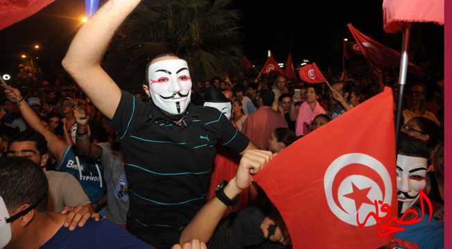 وقال محتج اسمه صالح إن كل الشعب التونسي يحتج على ممارسات النهضة وممارسات حكومة الرشوة والاغتيالات وممارسات النهضة بصفة عامة.