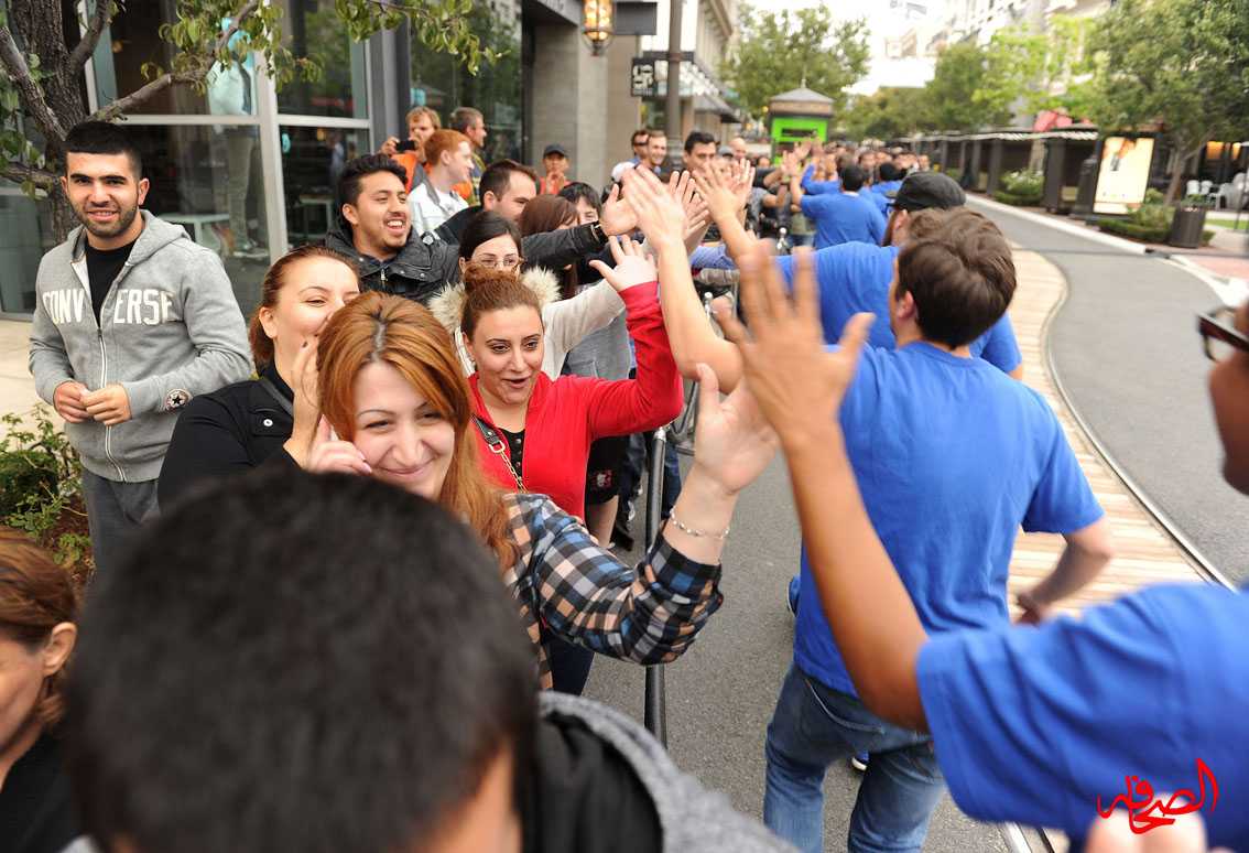 ويوم الجمعة اصطفت طوابير طويلة خارح المتاجر في طوكيو ونيويورك وسان فرانسيسكو ومدن أخرى لشراء الطرازين الجديدين وهي المرة الأولى التي تطلق فيها أبل جهازين في وقت واحد، ولم تحدد أبل مبيعات كل جهاز على حدة.