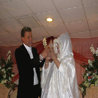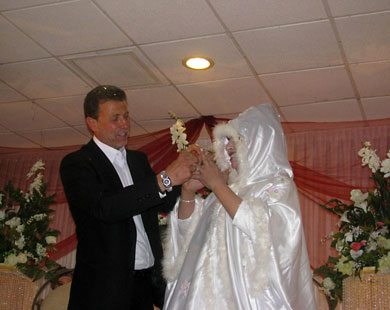 وانتظرت عروسه وحبيبة عمره ايمان نافع (47 عاما) التي ارتدت فستانا ابيض وكانت في كامل زينتها بالداخل وحولها اسرتها ومئات النساء. على مدى سنوات كانت الصلة الوحيدة بينهما الخطابات والرسائل التي كانا يتبادلانها من خلال أفراد العائلة.