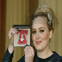 كرم ولي عهد بريطانيا الأمير تشارلز المطربة البريطانية أديل (25 عاما) خلال حفل نظم في قصر باكينجهام في لندن أمس. لدورها في صناعة الموسيقى..