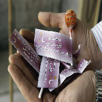 قام  جيش الدفاع الإسرائيلي بإسقاط آلاف من قطع من الحلوى "المصاصات" على سكان الضفة الغربية عن طريق الطائرات، كل منها مرفقة بورقة ملونة عليها رسم لفانوس وهلال، وعبارة (رمضان كريم .. قليل من الحلوى .. بعد أم مررت حماس الحياة في الضفة) ، الطريف أن الجملة احتوت على خطأ نحوى فادح . حيث جاءت كلمة "مررت" .. "مرمرت" ، وهو ما يقود التفكير إلى سفينة "مرمرة" التي حاولت كسر الحصار الإسرائيلي عن غزة منذ سنوات ، وواجهها جنود الاحتلال ، وقتلوا بعضا من ركابها.