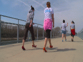 بدلا من توعية الناس بخطورة ارتداء الكعب العالي على القدمين والعمود الفقري، وهو ما أكده الاختصاصيون، وتشجيع السيدات على ارتداء أحذية مريحة بسيطة ، يشجع البعض في لندن على ارتداء الكعب العالي، ليس ذلك فقط، ولكن لمدد طويلة جدا. تحت شعار تحقيق الأرقام القياسية العالمية .