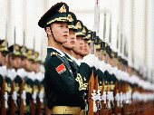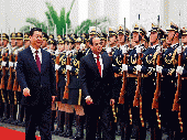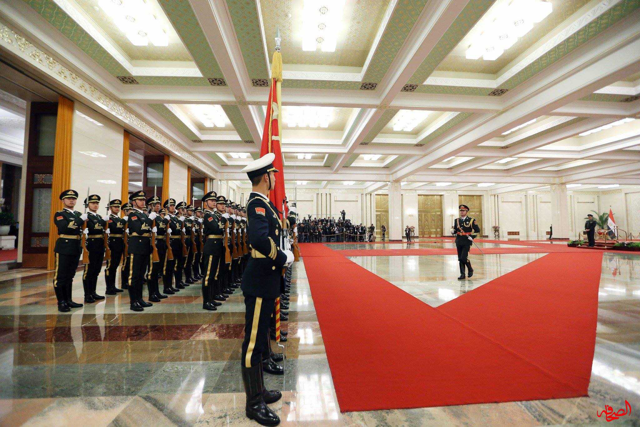 وتفقد السيسي وشي حرس الشرف في الساحة الشرقية لقاعة الشعب