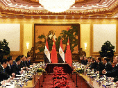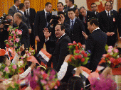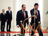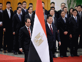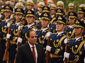 شهد الرئيس المصري مراسم استقبال رسمية حضرها الرئيس الصيني شي جين بينغ اليوم الثلاثاء. وبعد مراسم الاستقبال أجرى الزعيمان محادثات ثنائية أعقبتها جلسة توقيع اتفاقات خلال زيارة للرئيس المصري تهدف إلى تعزيز الروابط بين البلدين.