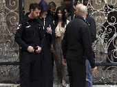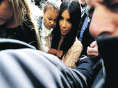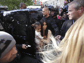 وأحاط عشرات المعجبين بالسيارة التى نقلت الاثنين وطفلتهما البالغة من العمر 22 شهرا وكلوى كاردشيان شقيقة كيم إلى الكنيسة، وارتدى وست والطفلة اللون الأبيض فيما ظهرت كيم فى ثوب من اللون البنى الفاتح ولون ثمرة المشمش.