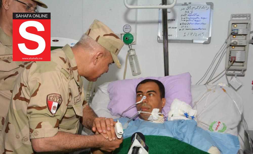 زار القائد الأعلى للقوات المسلحة، ووزير الدفاع الفريق صبحي صدقي أمس المصابين في أحداث سيناء من الجنود والضباط . وكان من بينهم الرائد كريم بدر .