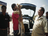 وتم نقل الأسد الذي يدعى "أليكس"، واللبؤة التي تدعى "منى"، في قفصين حديديين، بإشراف 3 أطباء بيطرين تابعين للمنظمة النمساوية فور راوس العالمية.