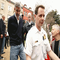 وقد اعتقلت الشرطة كلوني ووالده وآخرين، منهم النائب الديمقراطي جيم موران عن فريجينيا، وعدد آخر من ناشطي الحقوق المدنية مثل بن جيليوس، بعد ان حذرتهم لثلاث مرات بعدم تجاوز الخطوط التي وضعها الامن حول مقر السفارة.